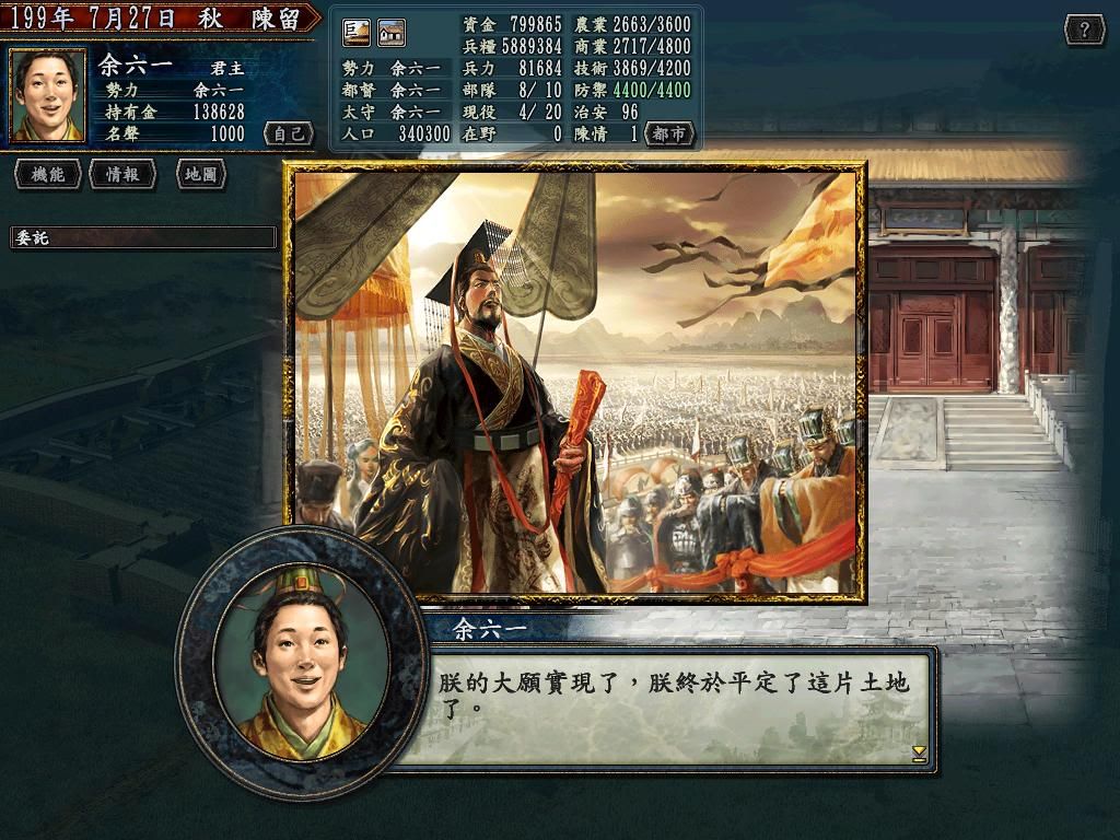 這種事沒有相信不相信的,就算有存檔,也可以是中途用了修改器。最重要是過程、體會,而不是結果。 胡飛兄不如說說: 關鍵是在於得到玉璽?收得各有超凡長處的劉關張?還是有其他轉捩點? 策略上、技術上要注意些甚麼? 覺得困難在哪些細節上?又有甚麼部分不太受六一影響? 有甚麼當初意想不到的困難?又有沒有一些當初預計的困難,原來未有想像中那麼嚴重? 只可惜......