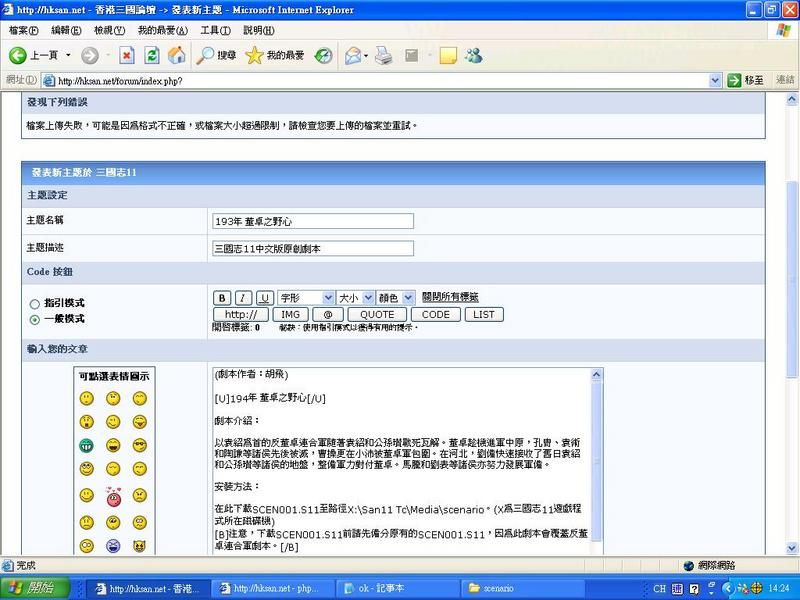 頭先想upload個自己整既三國志11中文版劇本比大家玩,點知upload唔倒。