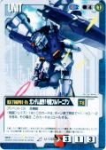 (傷害判定步驟):《◎》 這張卡在,角色配置中的狀態,2枚以上機體的部隊中的場合,這張卡的部隊所受的傷害是,這張卡 的部隊中的機體,可以任意分配。但是,不能分配超過這些的防御力。 | ||