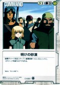 (常時):持有「砂漠」的自軍角色1枚是,回合終了之前到+X/+X/+X。 X的值是,持有「砂漠」的自軍卡的枚數值。 | ||