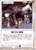 (常時):只有1枚機體為部隊中,合計國力4以上的自軍 1枚機體是,回合終了之前,戰鬥傷害是,不被破壞,不受傷害。 | ||