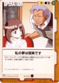(戰鬥階段):《ヾ》廢棄這張卡。那個場合,和持有「NT」的角色 同部隊中,角色沒有配置的全部自軍機體是,回合終了之前,得到和那角色1枚的本來的戰鬥修正同值的 戰鬥修正。這個效果不重覆。 | ||