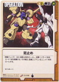 (自動D):在自軍回合終了時,這張卡上移除1個指示物。這張卡上沒有指示物的場合,廢棄這張卡。 (自動A):全部的玩家是,指令的使用,任務的使用「(自動)」以外的能力的使用,機體的出擊不能進行。 |