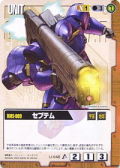 預防(4) (常時):《◎》自軍格納庫中選X枚卡片廢棄。 那個場合,這張卡是,回合終了之前得到+X/±0/+X。 X的值是,自軍G的枚數為上限。 |