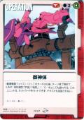 (敵軍戰鬥階段):《ヾ》這張卡以後,回合終了之前, 視同{機體,地形適性[宇宙][地球],1/0/4}。這個機體是,配置卡不能配置,能力不能追加。 | ||
