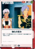 (自動A):全部的自軍機體是,得到-1/-1/-1。 (自動D):自軍部隊在每給與敵軍本國戰鬥 傷害,拿取1枚卡。 | ||