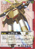 感應式兵器(2) (自動D):這張卡在被破壞的場合,敵軍玩家是,可以橫置2枚G。那個場合,這張卡的破壞無效,這張卡 以橫置狀態移至敵軍配備區。 | ||