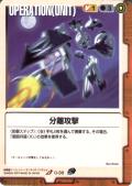 (常時):《◎每》沒有被破壞的自軍1枚機體移出遊戲。那個場合,移除的機體的資源 的合計值同值的枚數,選敵軍垃圾埇中的卡,或是,敵軍棄牌庫上的卡,移出遊戲。 | ||