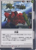 (配備階段):《ゝ》指定敵軍1枚機體,手牌選1枚廢棄。 那個場合,這回合,被指定的機體是,受到傷害的場合,廢棄。 | ||
