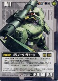 高機動 (自動D):這張卡的後一個順序出擊的自軍1枚機體是,回合終了之前得到「高機動」。 (自動D):這張卡在戰鬥區中被破壞的場合,這張卡的後一個順序的機體破壞。 |