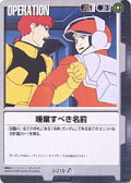 (戰鬥階段):《◎》自軍1枚機體廢棄。那個場合,和被廢棄的機體 同部隊中的自軍1枚機體是,回合終了之前,得到和被廢棄的機體的戰鬥力同值的戰鬥修正。 | ||