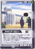 據點 殖民地 (自動B):這張卡在被使用出場的場合,以重置狀態出場。其次,回合終了時拿取1枚卡。 (自動D):這張卡在交戰中的場合,敵軍本國和棄牌庫上各展示1枚卡。展示的卡的指定國力相同的場合,這張卡廢棄。 | ||