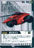 (自動A):這張卡是不能在攻擊中出擊。 (防御步驟):《◎》這張卡在和持有「殖民地」的機體同區的場合,和這張卡交戰中的敵 軍1枚機體橫置。 | ||