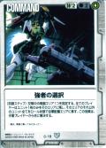 (防御步驟):指定1個交戰中的戰鬥區。全部的玩家是,該區中自軍機體 1枚留下,其於的機體以橫置狀態移至自軍配備區。這個效果是,從手番玩家先解決。 | ||