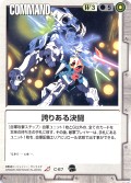 (常時):自軍1枚機體所持有的,「水」「砂漠」「速攻」「強襲」 「宇間戰鬥」「範圍兵器」1個,在回合終了之前,「水」「砂漠」「速攻」「強襲」「宇間戰鬥」 「範圍兵器」變更成其中1個。 | ||