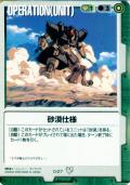 (自動B):這張卡被使用出場的場合,回合終了時拿取卡片1枚。 (自動A):這張卡所配置的機體得到「砂漠」。 |