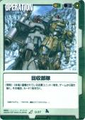 (自動C):在自軍抽牌階段,這張卡上的1枚指示物去除,沒有指示物的場合, 廢棄這張卡。 (自動A):敵軍玩家是,沒有持有「艦船」「據點」的機體的,不能進行使用。 | ||
