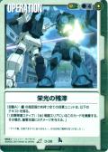 (自動A):持有綠的指定國力全部自軍機體是,得到以下的能力。 「(自軍歸還步驟): 戰鬥區中廢棄這張卡。那個場合,給與敵軍本國2點傷害。」 | ||