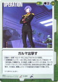 (重置階段):《ヾ》自軍格納庫中,本來持有者為敵軍,G以外 的1枚卡移出遊戲。那個場合,這個回合,敵軍是和己移除的卡同種類的卡不能使用。 | ||