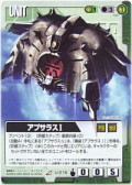 (自動B):這張卡在被使用出場的場合,以重置狀態出場。其次 ,敵軍棄牌庫上1枚卡展示。展示的卡為,G,指令,任務的場合,那張卡移至自軍格納庫。在那以外的 種類的場合,移至敵軍格納庫。 | ||