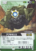 範圍兵器(3) (自動D):在自軍回合終了時,這張卡上放置1個指示物。 (自動A):這張卡是,對應這張卡上的指示物的個數,得到以下的能力和戰鬥修正。 2個以上:「高機動」 3個以上:「範圍兵器」+1 4個以上:+2/+2/+2 5個以上:「範圍兵器」+2 |