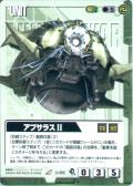 水 【(自動):這張卡是,不能和沒有持有「水」的 自軍機體同區中出擊。】 (防御步驟):《ヾ》這張卡在地球區的場合,和這張卡交戰中的沒有持有「水」的敵軍機體 1枚橫置。 | ||